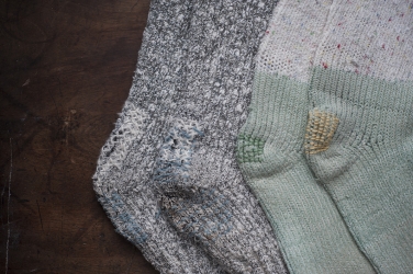 僕の妻はつくろいの作家として活動しています。破れてしまった靴下やシャツなど衣服を直す仕事を受けたり、教えたりしています。